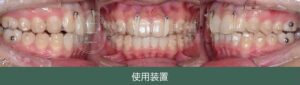 ④治療に用いた主な装置:マウスピース型矯正装置、アンカースクリュー2本、顎間ゴム