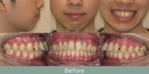 ②症状名:過蓋咬合、Overjetと正中離開を伴う歯性上下顎前突症例